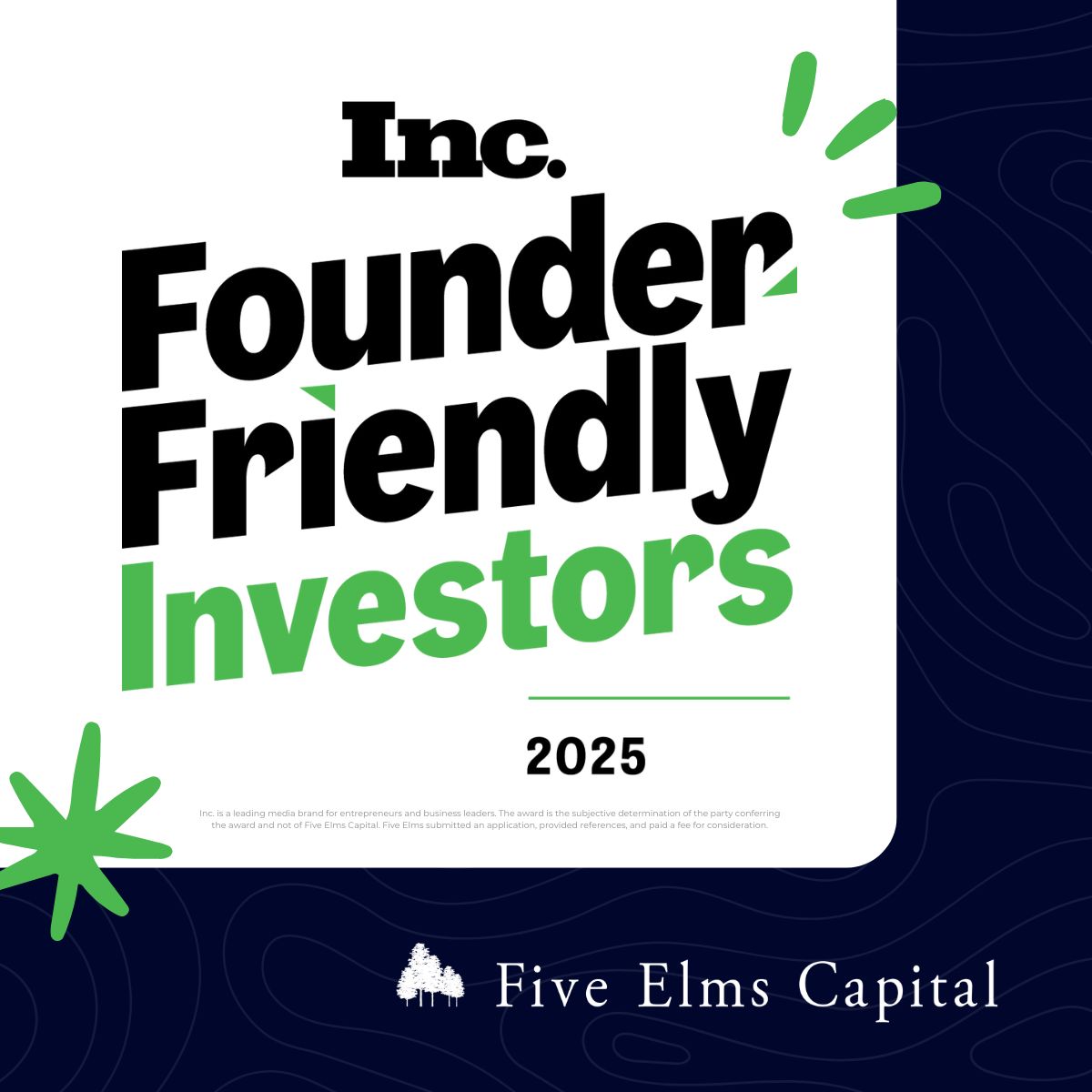 Exciting news - Five Elms was named one of Inc. Magazine’s Founder-Friendly Investors of 2025! We’re honored to partner with incredible founders building category-defining software companies and grateful for the trust they place in us. We’ve been committed to supporting founder-led companies since our inception, and are honored to be recognized on this list once again.